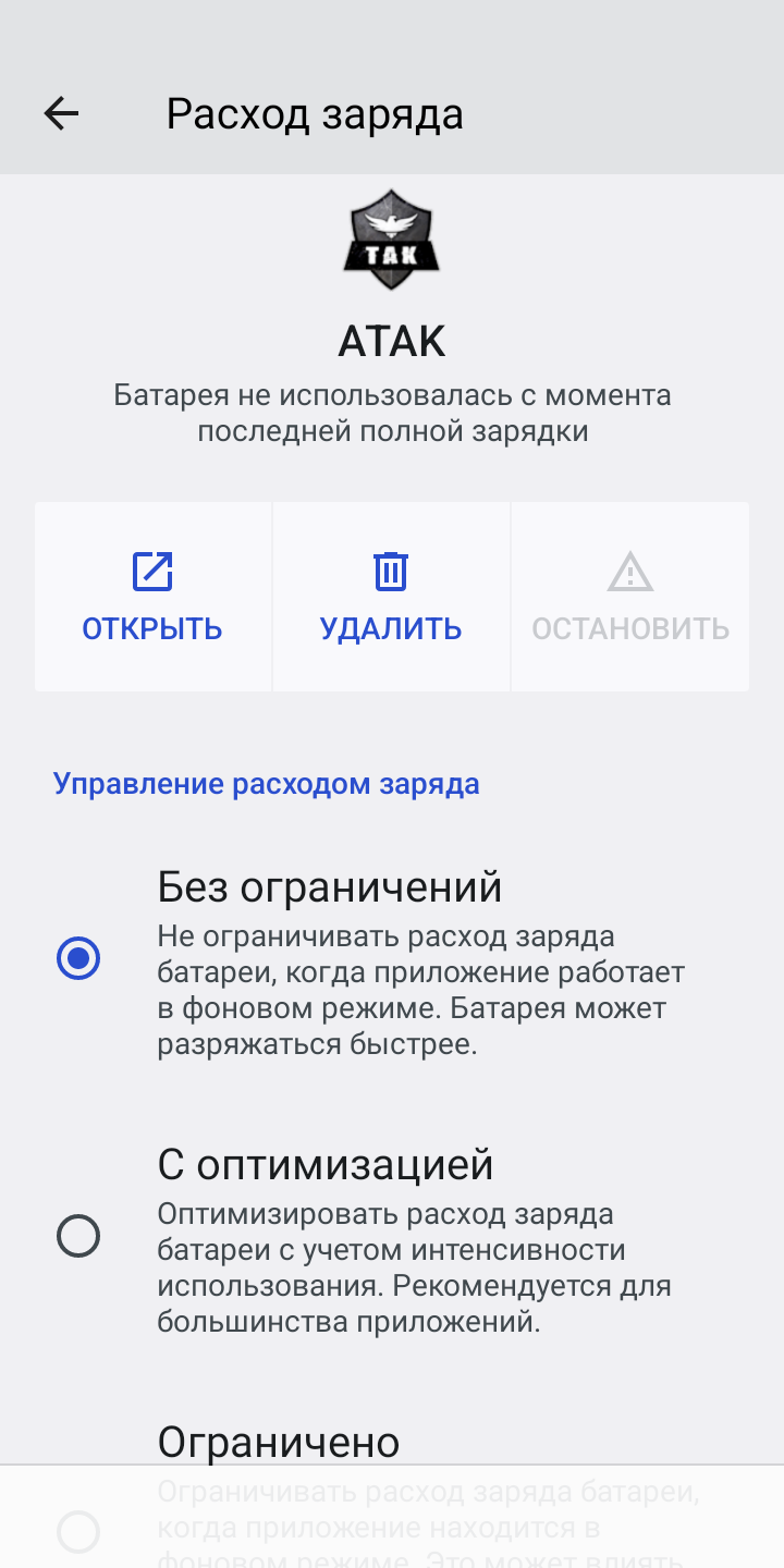 Отключение оптимизации батареи