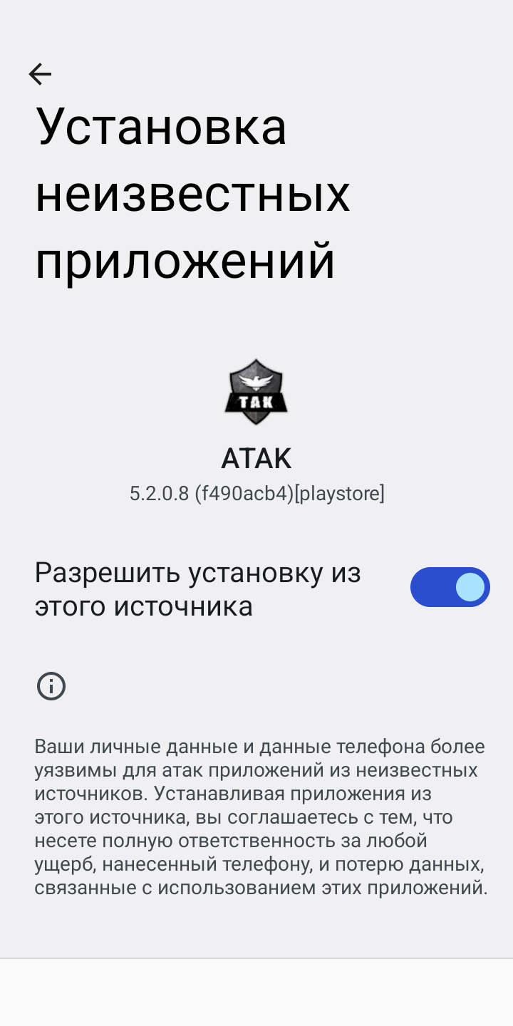 Разрешение установки плагинов ATAK